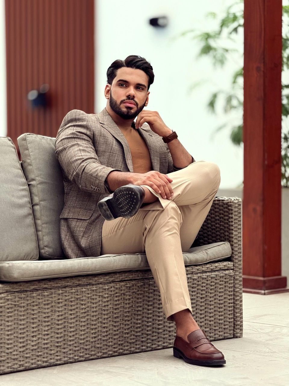 • ارتديه مع بلوفر بني فاتح أو قميص أبيض كلاسيكي لإطلالة متكاملة.