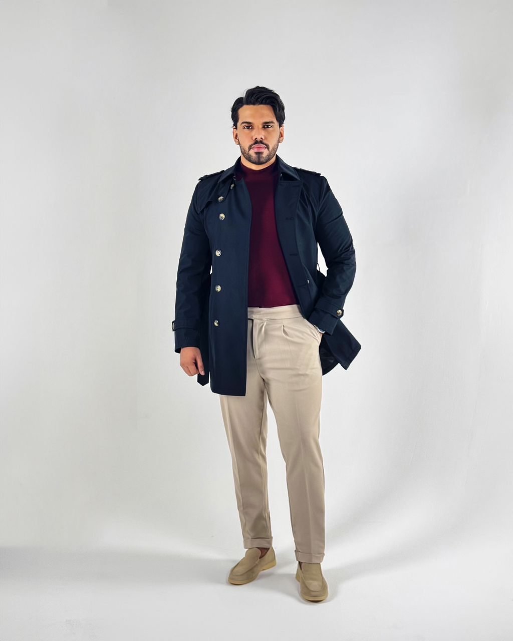 • تصميم مزدوج الأزرار بأناقة كلاسيكية وعصرية.