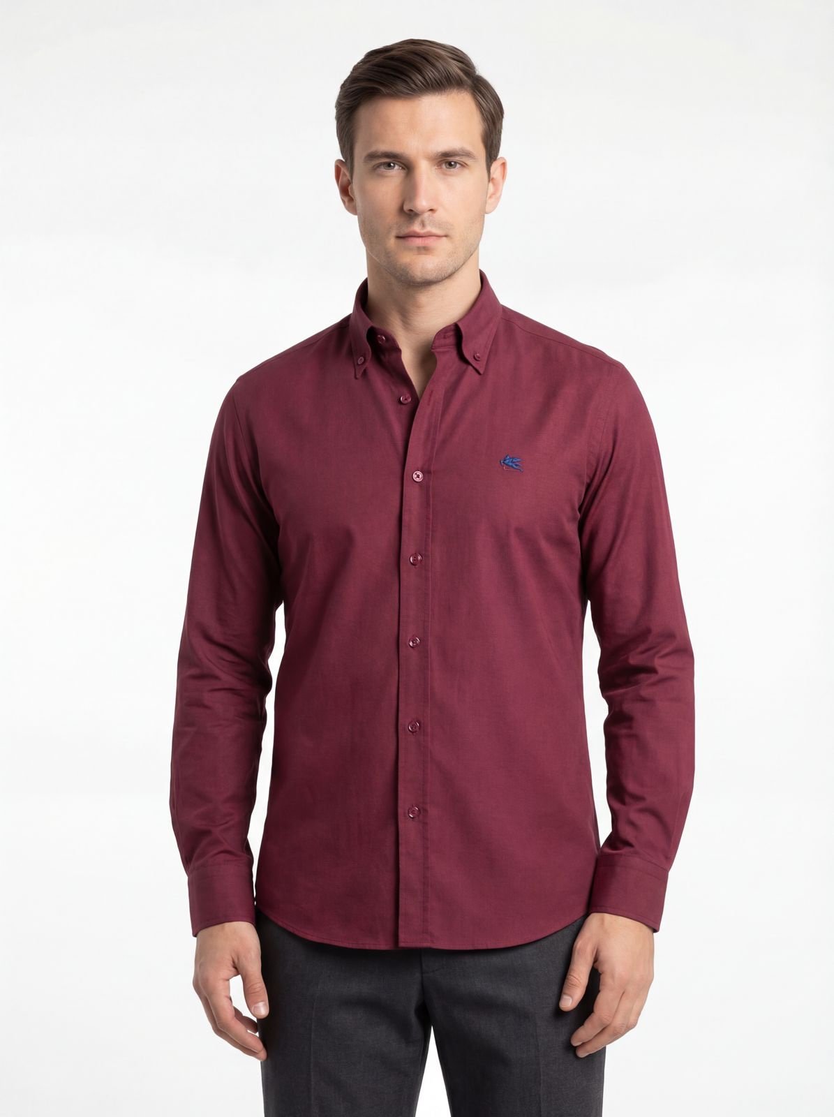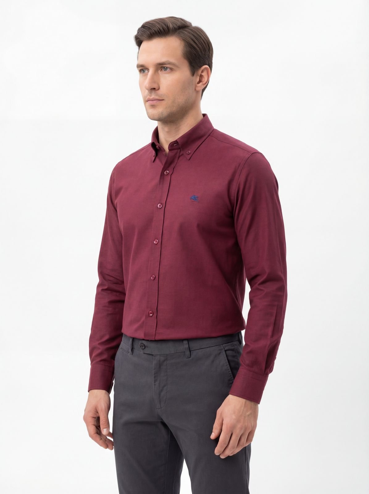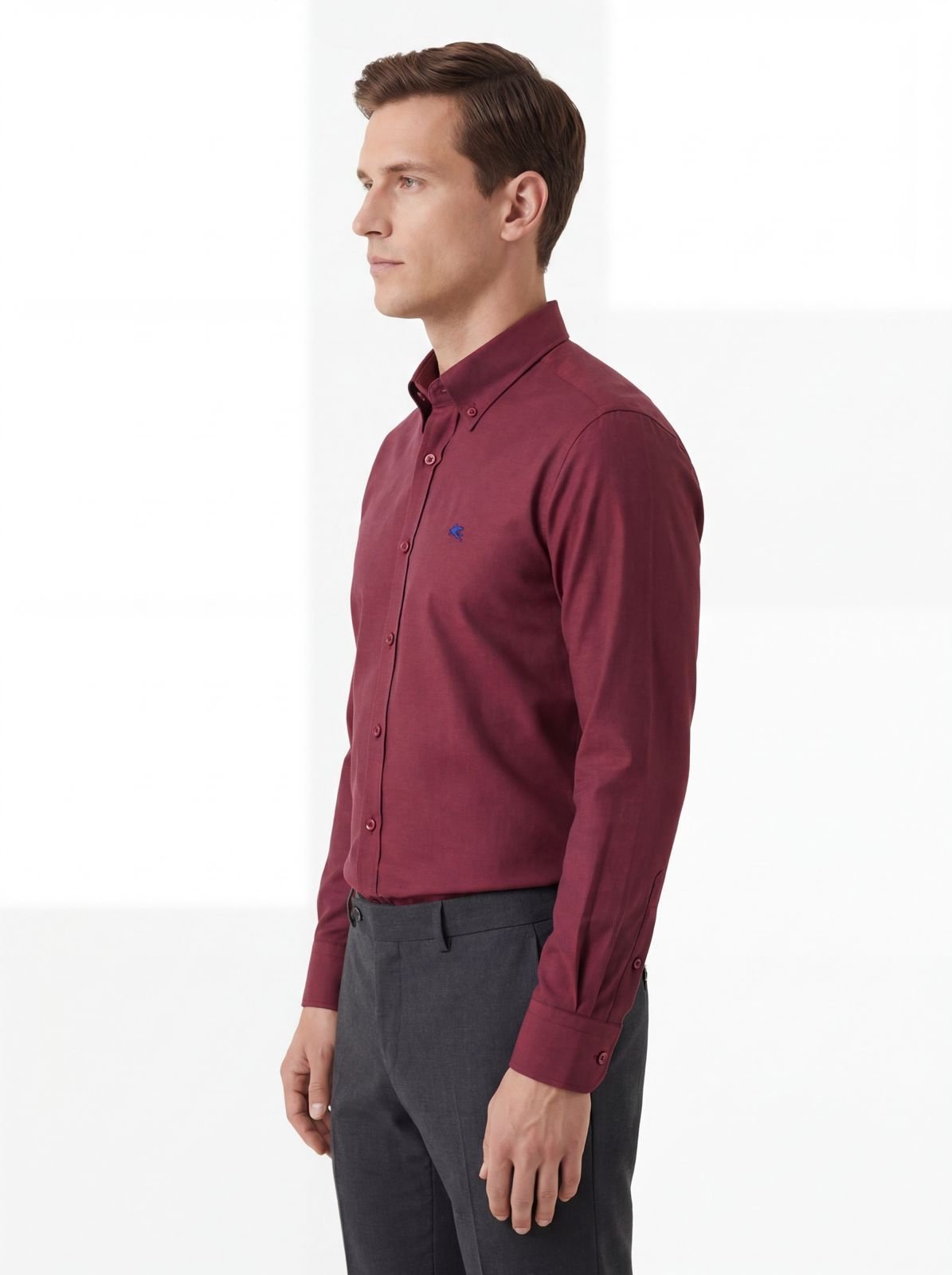 الوصف التفصيلي للمنتج: قميص كلاسيكي بلون عنابي