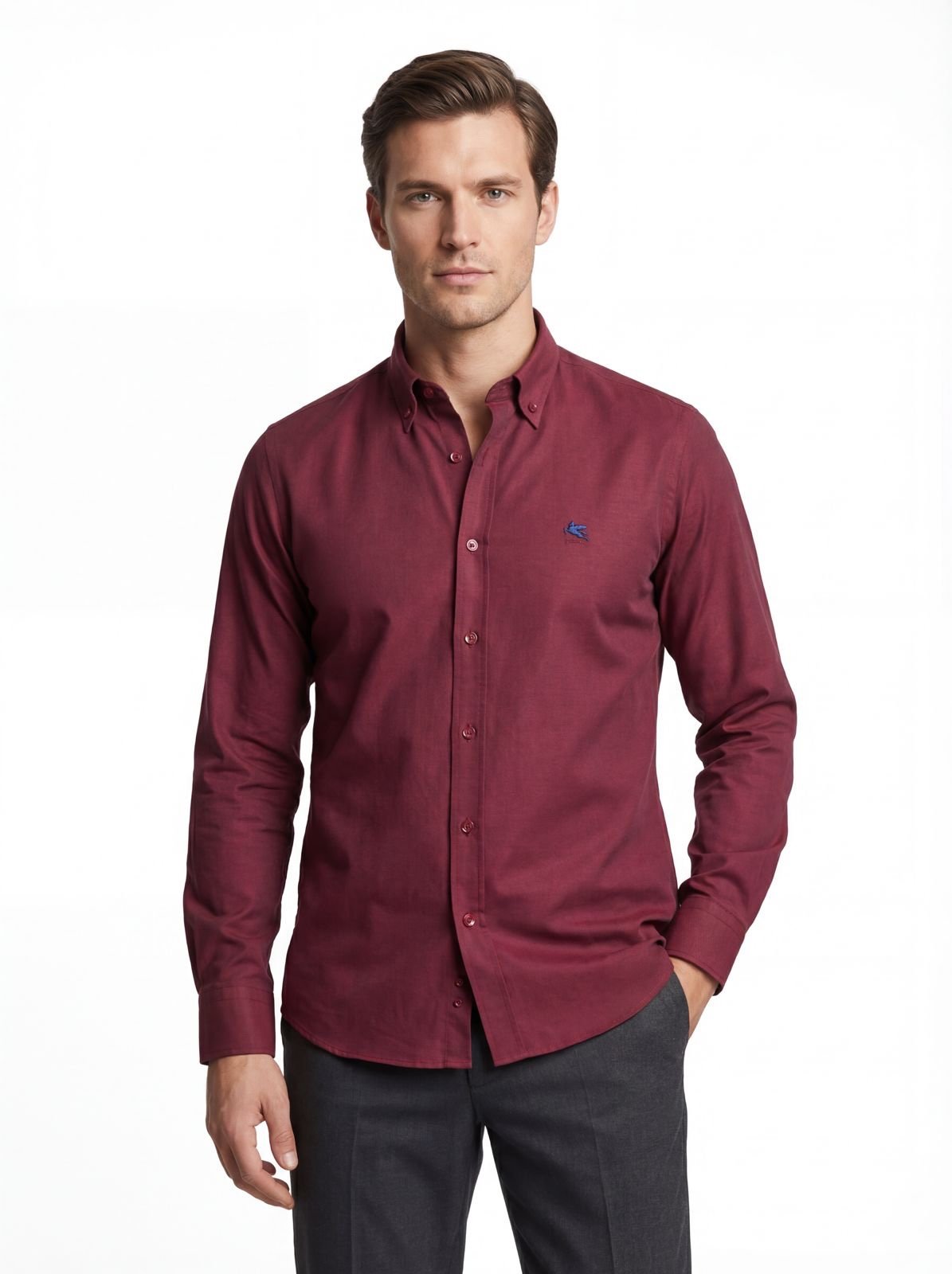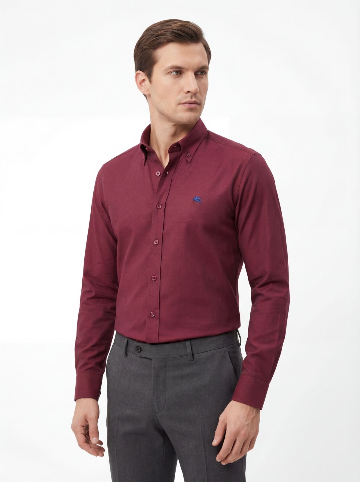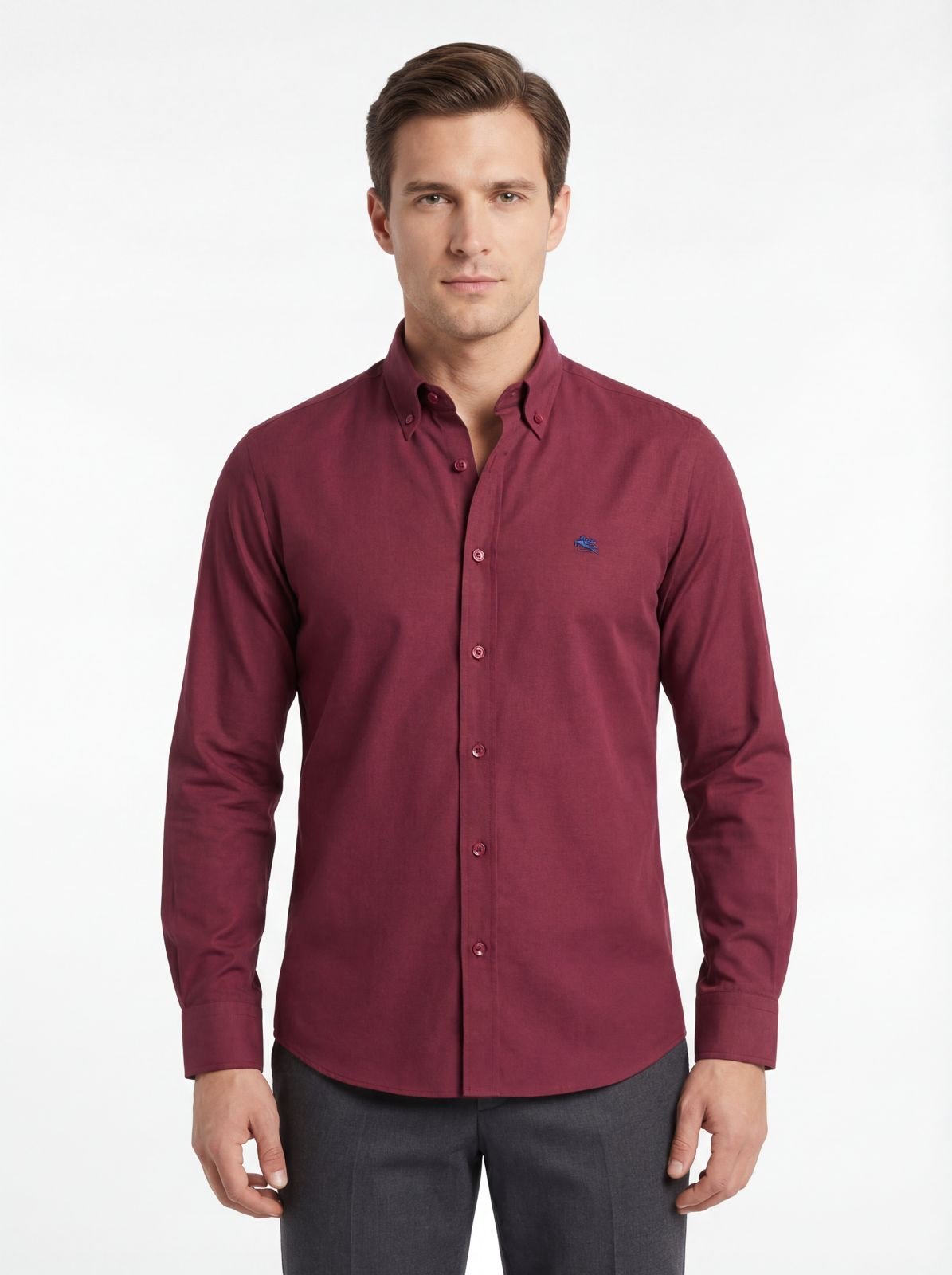 الوصف التفصيلي للمنتج: قميص كلاسيكي بلون عنابي