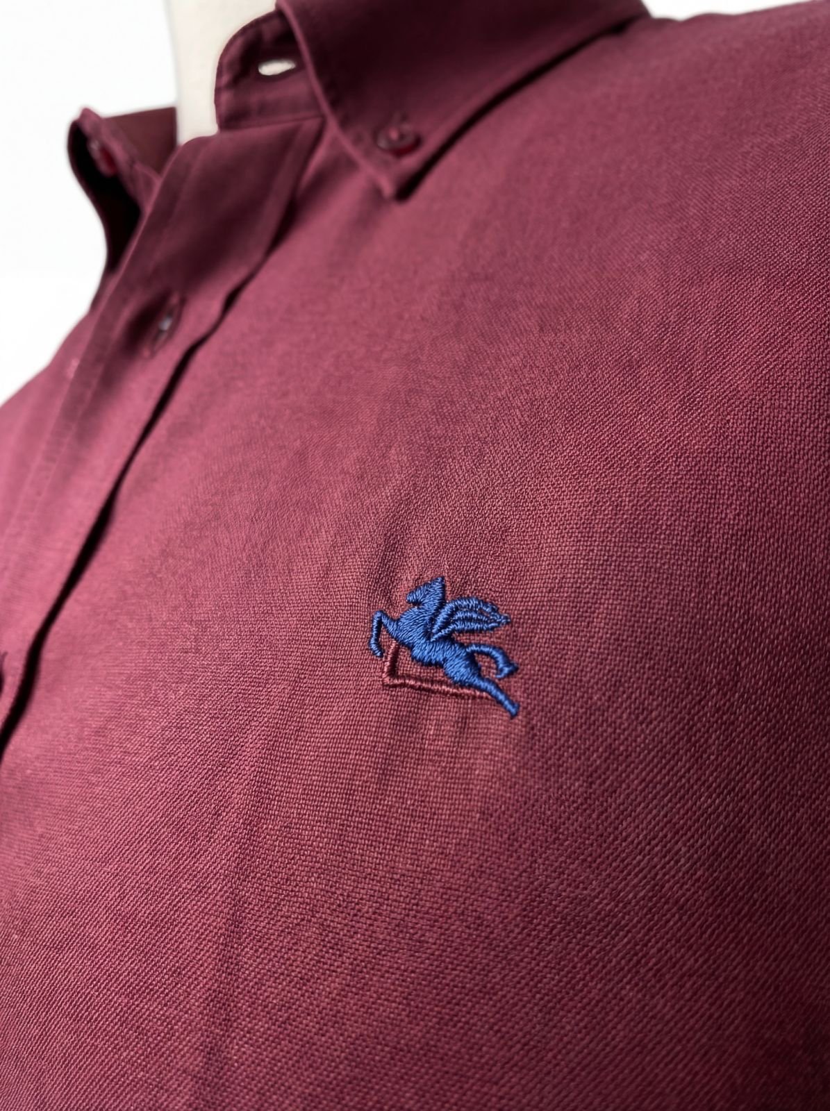 قميص أنيق بلون عنابي غني يناسب جميع المناسبات، سواء الرسمية أو الكاجوال. يتميز بتصميم كلاسيكي مع ياقة مزودة بأزرار للمزيد من الثبات والشكل المرتب.