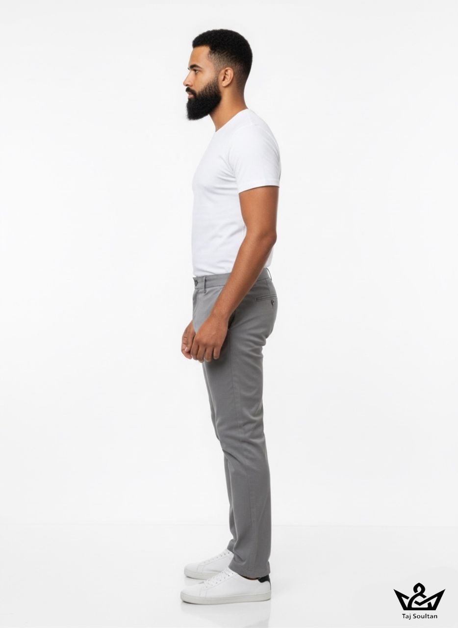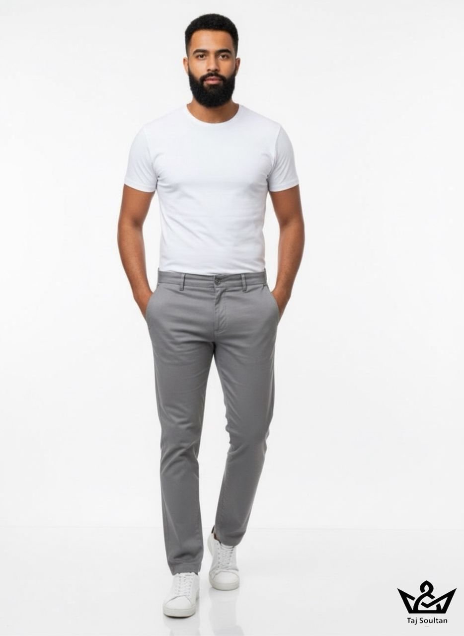 بنطال Grey Chinos من تاج السلطان يجمع بين الأناقة العصرية والراحة الفائقة في تصميم واحد.